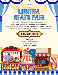 I am delighted to have been invited to participate in the Lumina State Fair event Las Vegas, and thank the Life Enrichment Director, Alyce Kincanon.
